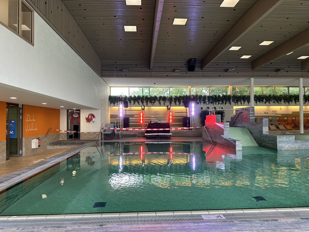 Besonders wichtig war uns dabei, das Beschallungssystem so zu installieren, dass es nicht zu unangenehmen Klangeinflüssen durch Hall oder dumpfen Sound durch die schlechte Akustig eines Hallenbads kam. Unser DJ sorgte mit einem Mix aus aktuellen Charts, Sommerhits und Partyklassikern für ausgelassene Stimmung bei den Jugendlichen.